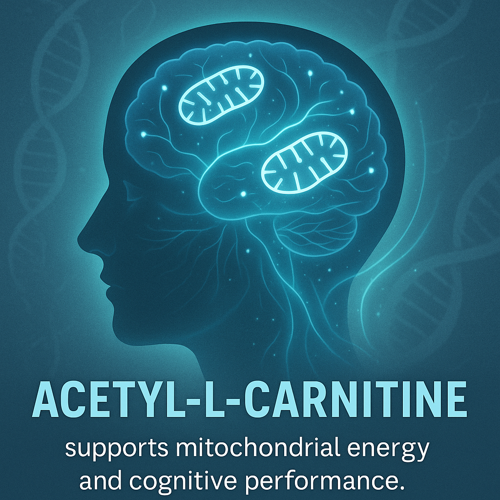 Acetyl-L-Carnitine (ALCAR) is an acetylated form of L-carnitine that readily crosses the blood-brain barrier, supporting both mitochondrial energy production and cognitive function.